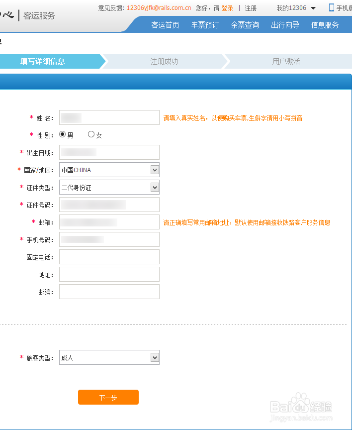 3、根据提示,输入手机号、验证码等信息,并设置密码。